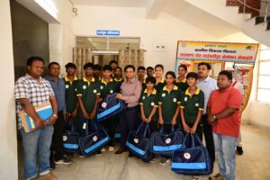 इस अवसर पर जिले के सिद्धों कान्हु स्टेडियम में संचालित बालक आवासीय एथलेटिक्स प्रशिक्षण केंद्र (25 खिलाड़ी), डे बोर्डिंग बालिका एथलेटिक्स प्रशिक्षण केंद्र (25 खिलाड़ी) तथा +2 बी.डी. उच्च विद्यालय में संचालित डे बोर्डिंग बालक एथलेटिक्स प्रशिक्षण केंद्र (25 खिलाड़ी) के कुल 75 प्रशिक्षुओं के बीच खेल किट वितरित किए गए। किट में जूते, मोजे, टोपी, एथलेटिक्स किट, टी-शर्ट, ट्रैक सूट एवं बैग शामिल थे।