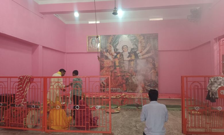राजमहल नीलकोठी चैती दुर्गा मंदिर में तीसरे दिन मां चंद्रघंटा की भक्ति में डूबा माहौल, श्रद्धालुओं की उमड़ी भीड़, “जय माता दी” के जयघोष से गूंजा मंदिर परिसर।