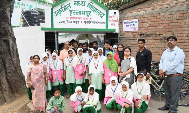 पाकुड़।सदर प्रखंड अंतर्गत उत्क्रमित मध्य विद्यालय, इस्लामपुर में बुधवार को जिला प्रशासन द्वारा शैक्षणिक गतिविधियों की समीक्षा के उद्देश्य से निरीक्षण किया गया। निरीक्षण के दौरान उपायुक्त मनीष कुमार तथा पंचायत राज मंत्रालय, भारत सरकार से आए सेक्शन ऑफिसर एवं सलाहकार (SOEPR) की केंद्रीय टीम ने विद्यालय की शैक्षणिक व्यवस्था, बच्चों की उपस्थिति तथा पढ़ाई की स्थिति का जायजा लिया।
