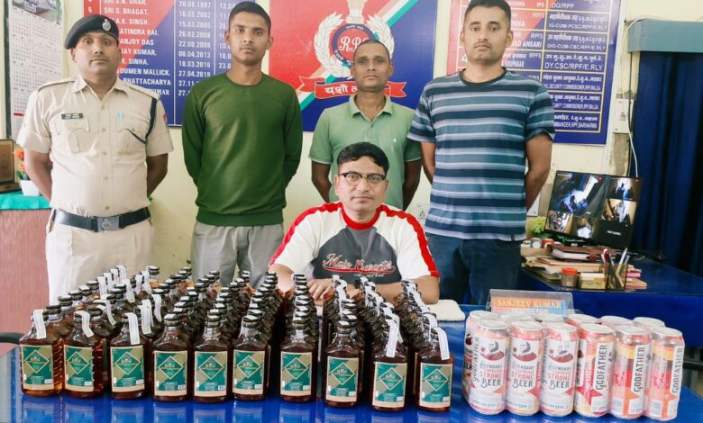बरहरवा में आरपीएफ की बड़ी कार्रवाई: ट्रेन के बैटरी बॉक्स से अवैध शराब और बीयर बरामद।