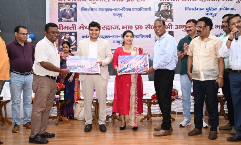 रविन्द्र भवन टाउन हॉल, पाकुड़ में निवर्तमान उपायुक्त एवं पुलिस अधीक्षक को भावभीनी विदाई।